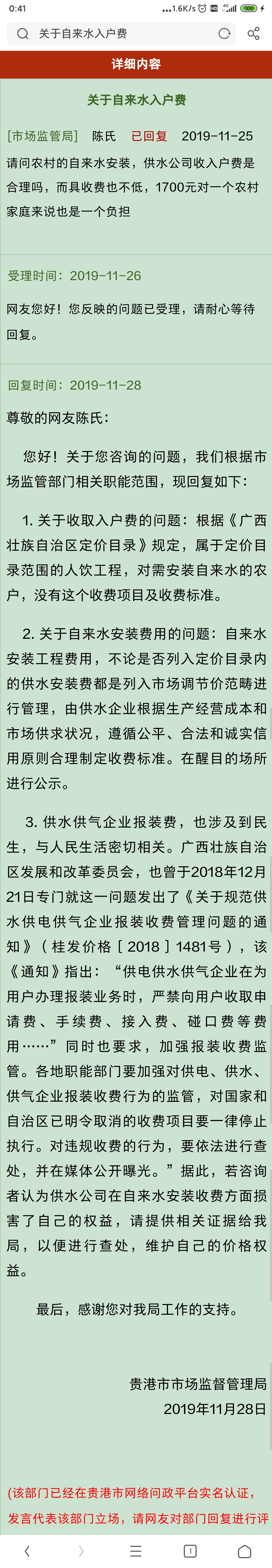 大哥,用水收取水费合情合理!但是安装费一户一两千块合理???相当于职位权力拿老百姓的钱完成这工程,美化自己屁股。  发表于 2020-6-1 10:16