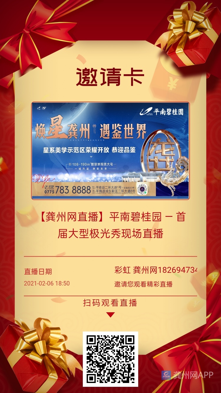 明天碧桂园售楼部开放 ,点图片二维码进去可以看极光秀直::播晚会 。2月6号19:00-21:00