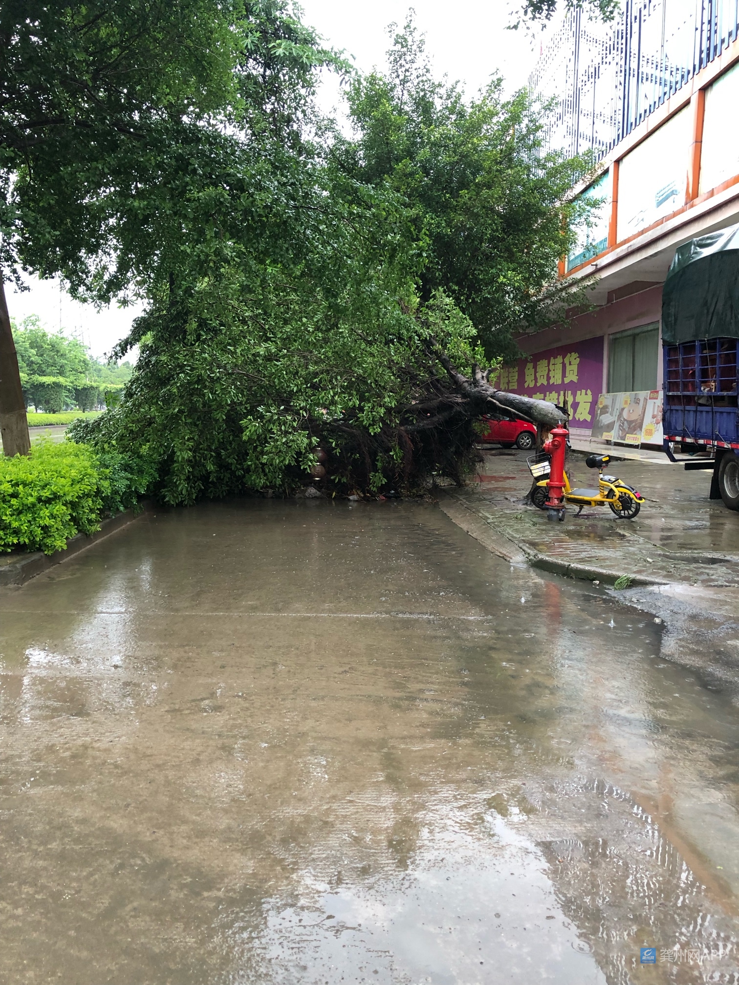 因昨晚暴雨所致,好一点门口有大树倒塌