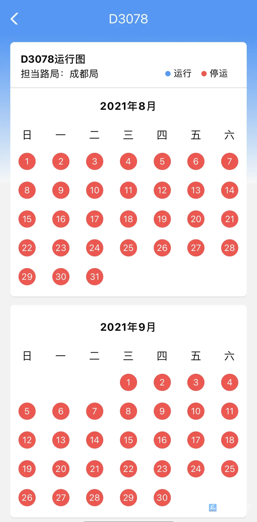 据12306APP显示,D3078次列车为由成都东开往南京南,已自8月1日起停运。