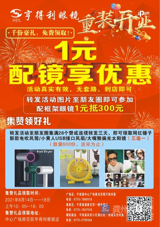 领取地址:平南县中心广场师范街亨得利眼镜(麦当劳餐厅斜对面)