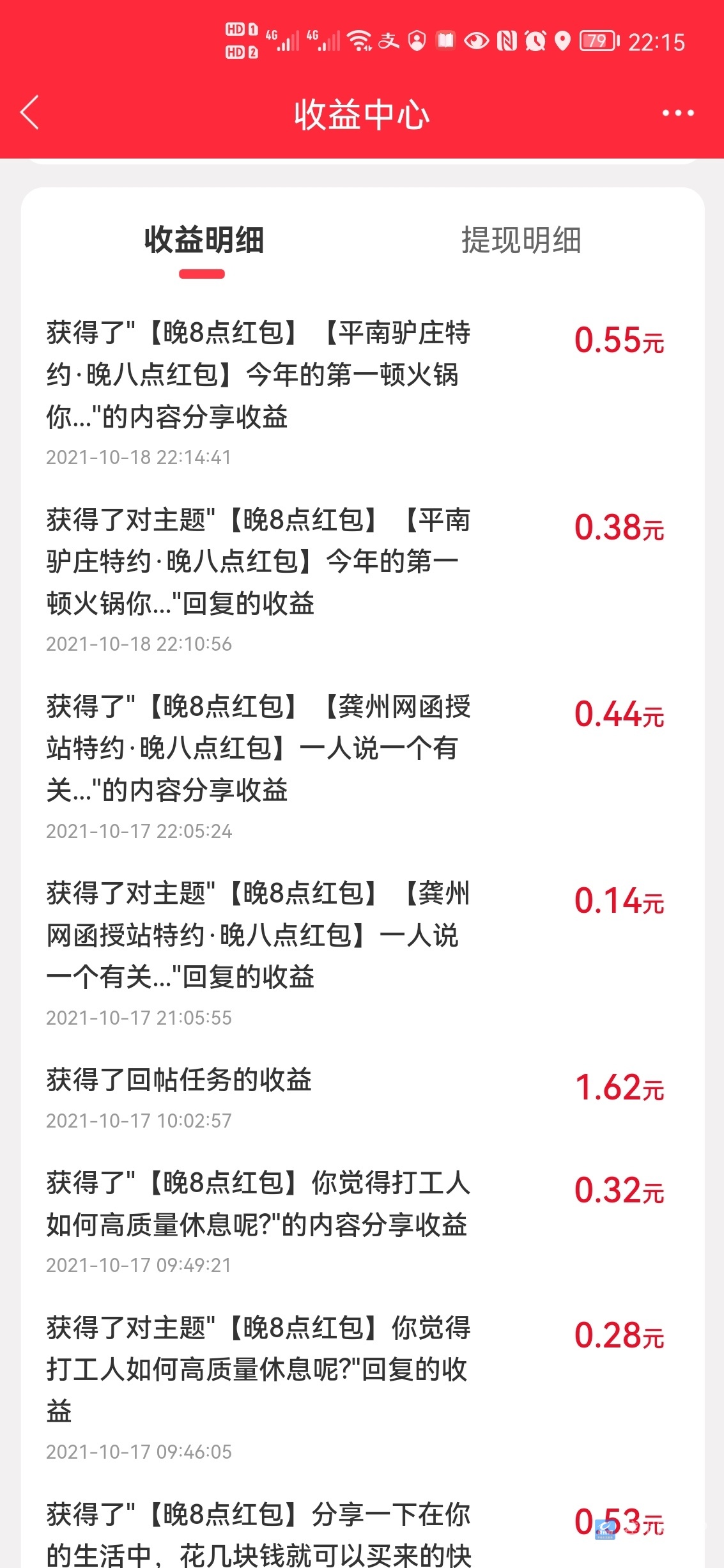昨天手气好到爆!在龚州网回10个帖得了一块多的红包