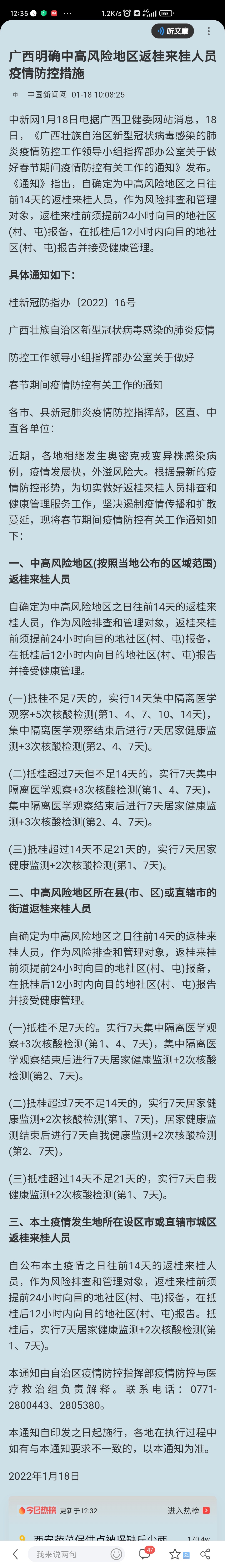 试总结一下,第一大点:中高风险地区的人来桂(中高风险地区是含多大范围按疫情发布地的说明为准,大的可能是整个市,小的可能是一个社区)集中隔离14天;