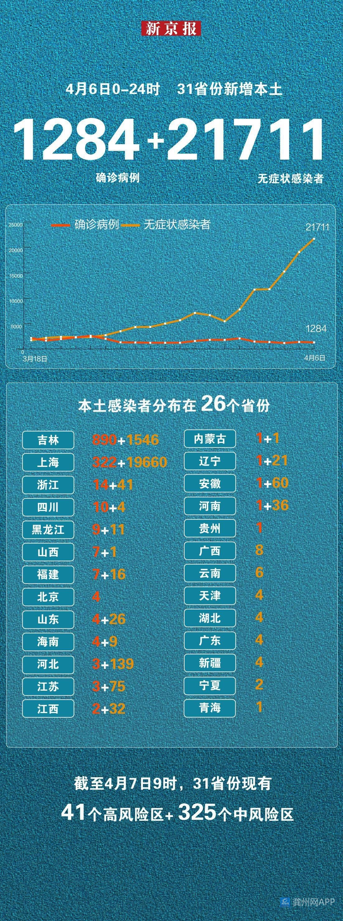 31省区市4月6日新增本土病例“1284+21711”例