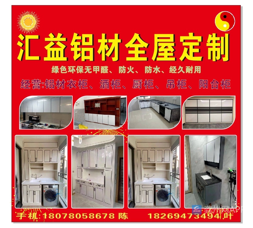 汇益铝材全屋定制:专业承接定制衣柜、酒柜、橱柜、吊柜、电视柜、收银台等……